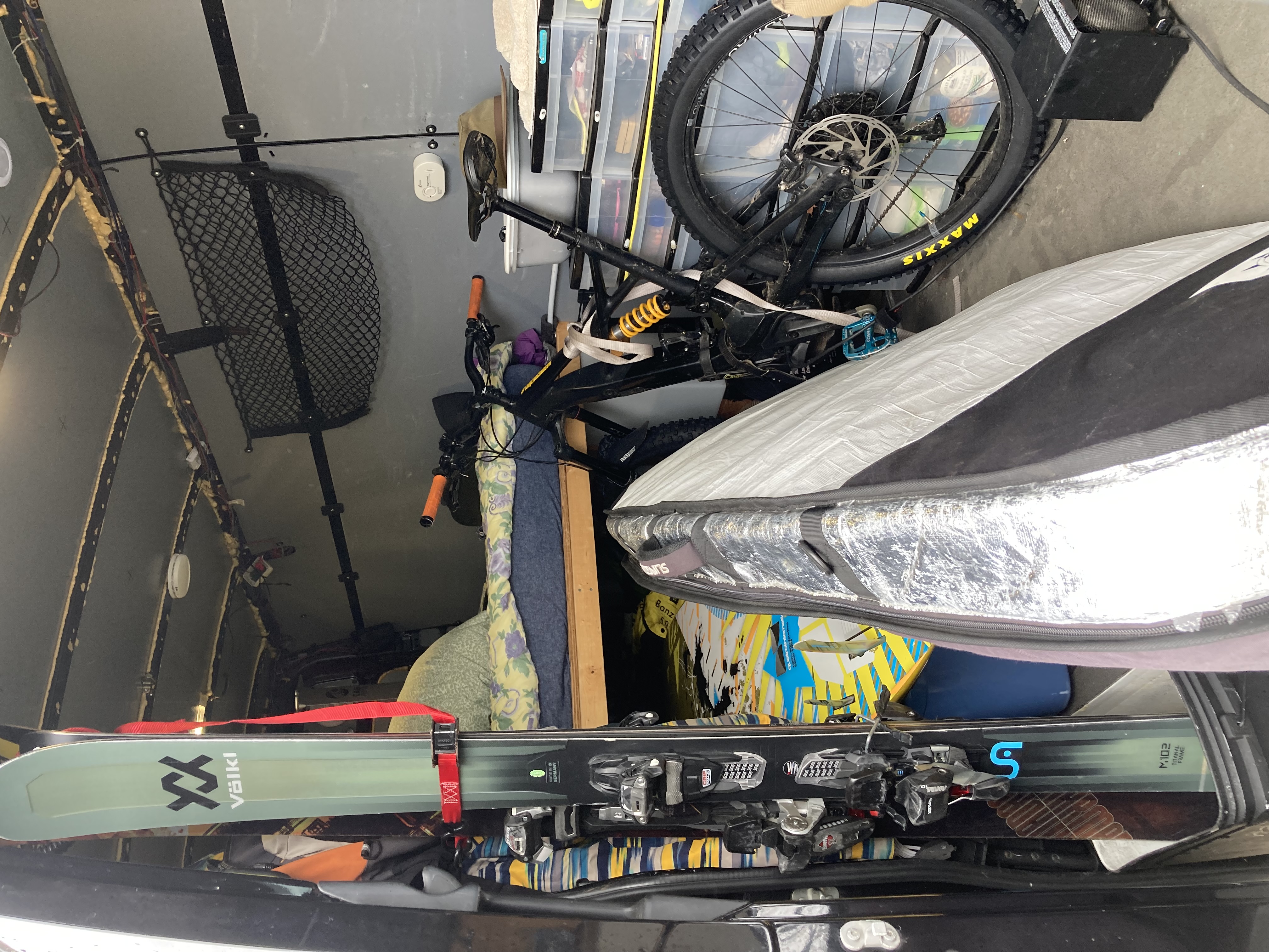 But everything just seems to pile up now…currently my extended sprinter full time stores the e-bike, all windsurfing gear, 3 pairs of skis and boots, snowboard sometimes, among fully rigged out camping kit, odd days the hanging acoustic bike and foil gear get added. It’s getting silly lol thank god snow season ends in 2 months, whew!