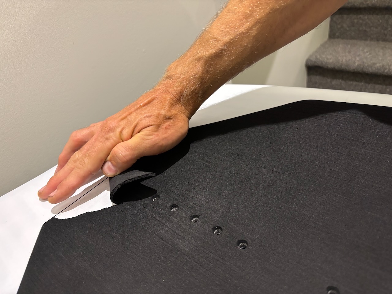 For a non-yellowing option I like to use Automotive Goop or E6000 (they seem to be the same thing but the E6000 has a better applicator nozzle). It stays flexible like contact cement, but dries clear, and it also allows for a bit of adjusting after you mate the pad to the deck. Tip: apply a light coat of Vaseline to the cap threads so you can open it easier next use.