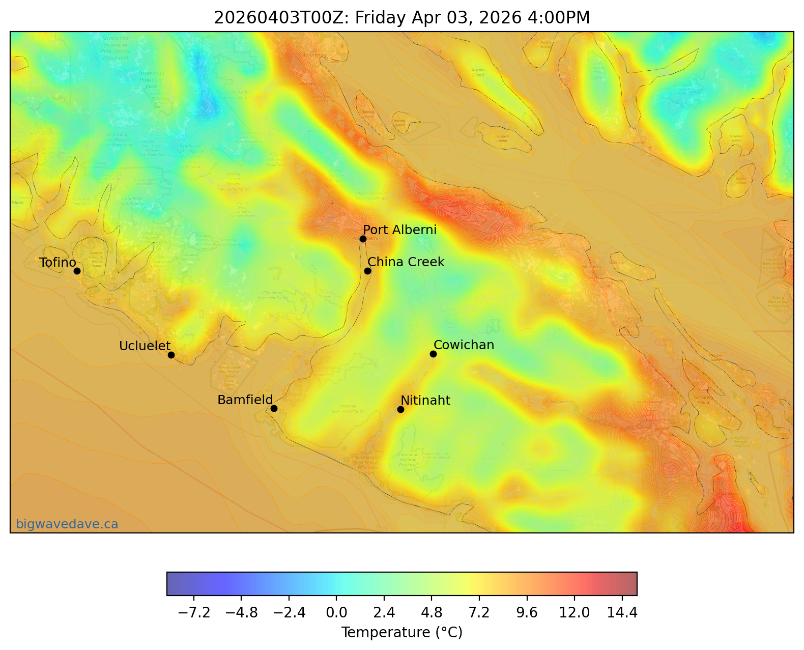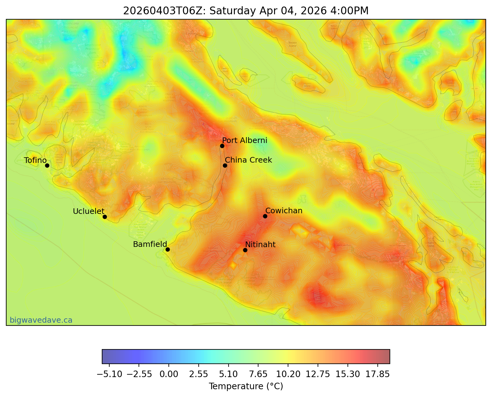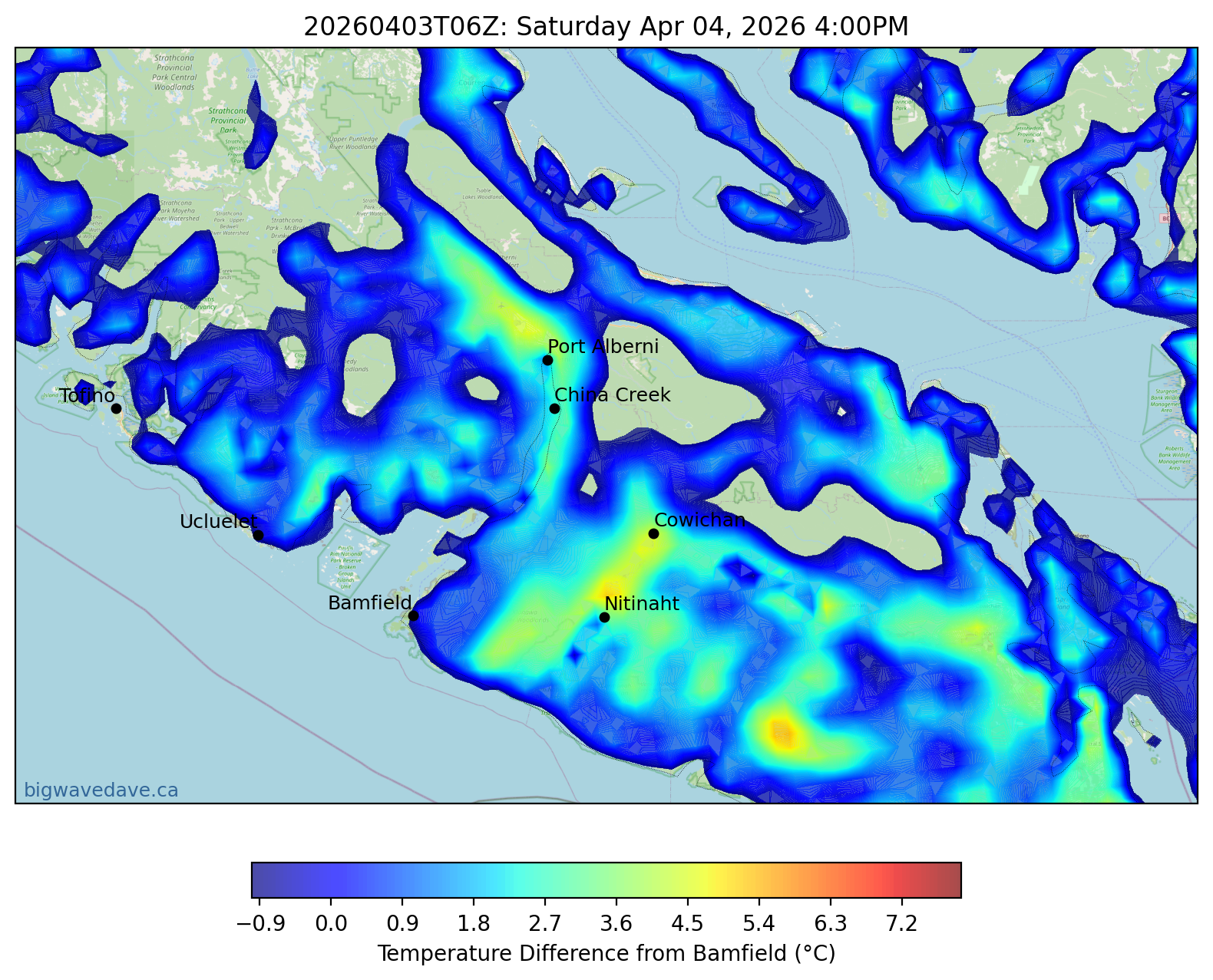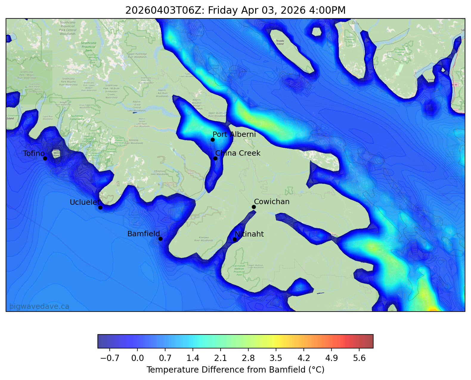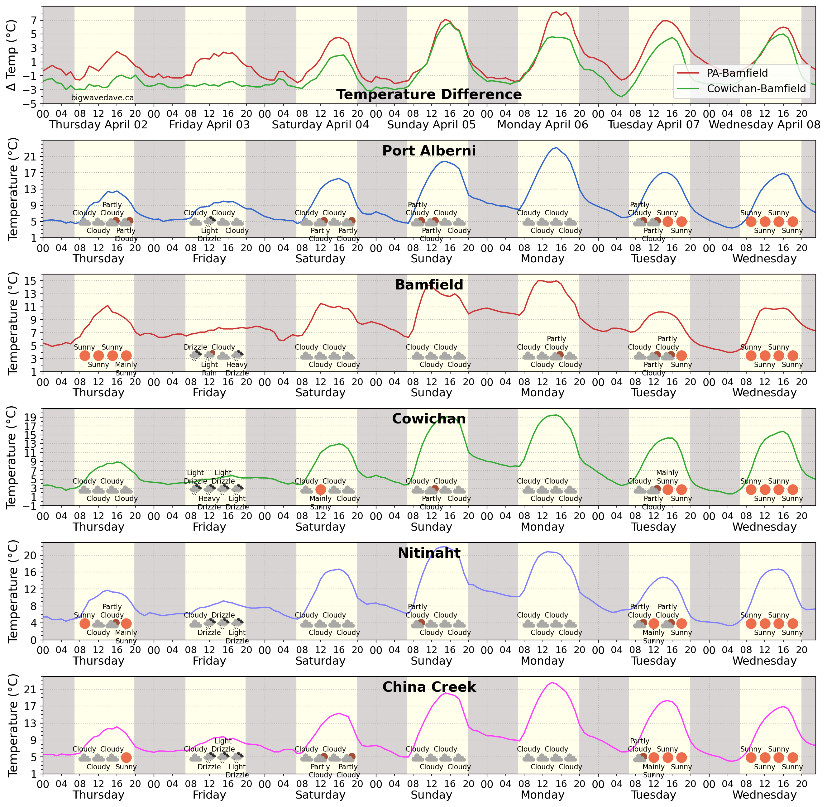 Temperature Delta & Forecast for 7 Days: Port Alberni | Bamfield | Cowichan
